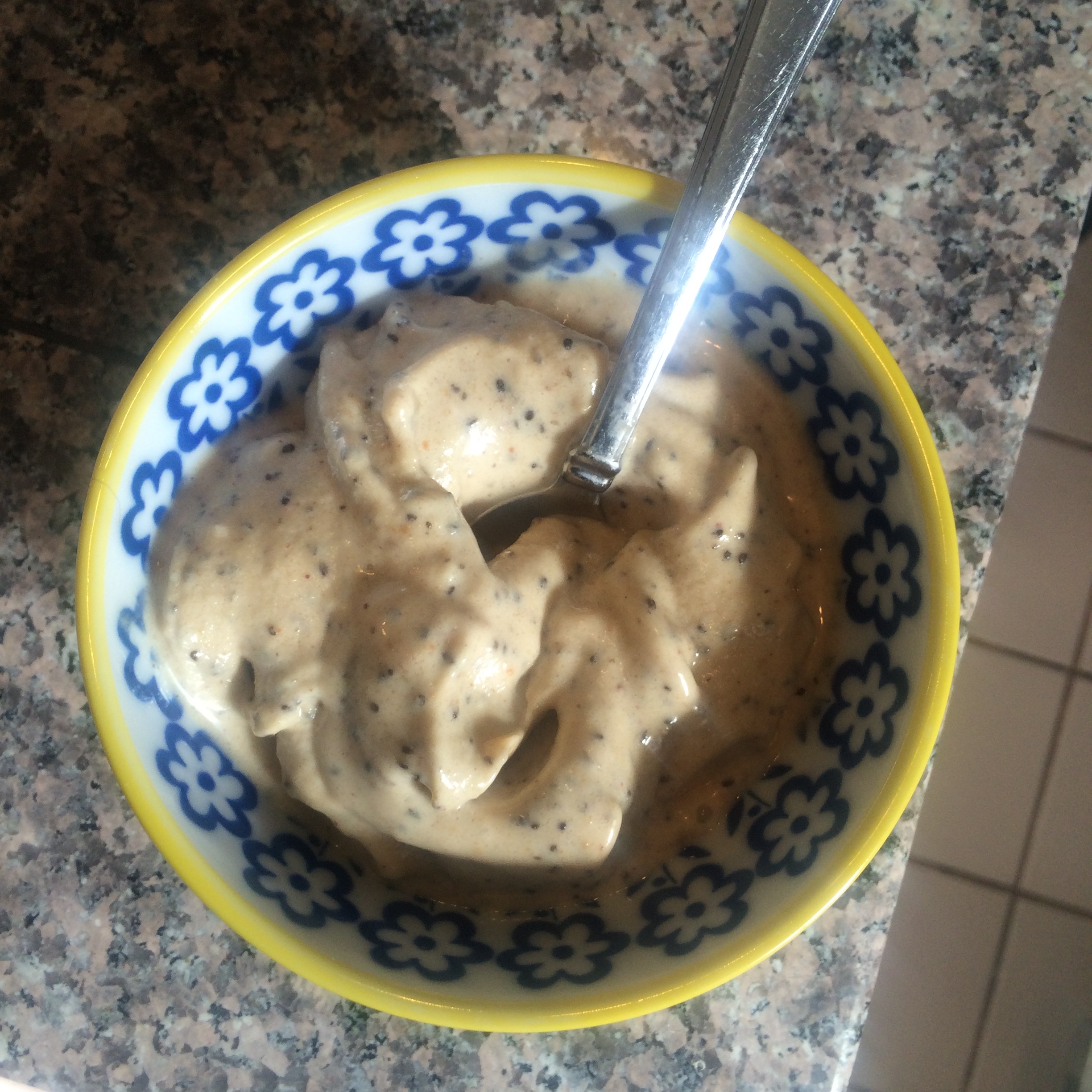 …and that’s it, maybe a splash of almond milk. But you blend all of that, or toss it in the food processor. And if you want more, double it, share it, do whatever. It’s vegan, dairy free, gluten free, and makes your taste buds so happy. Switch it up however, use cashew butter, peanut butter, carob chips, goji berries…play with your food and find what makes you happy and satisfied…maybe even add a tablespoon of protein powder.