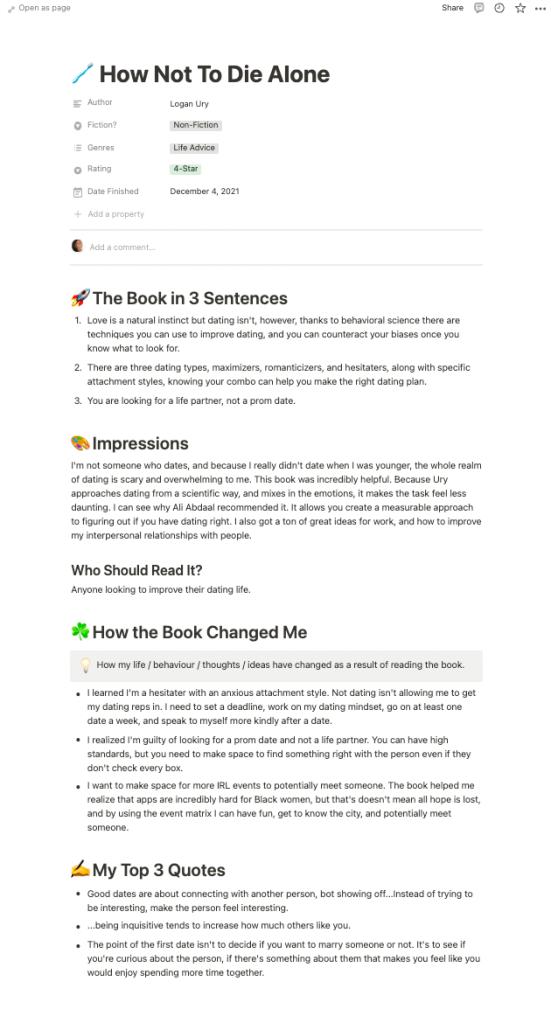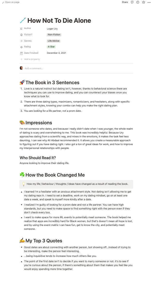 Recently, and what’s proven to be super effective, using Notion. The fact that I’m even using Notion feels like a cliche of all the productivity folks on YouTube, but I swear they aren’t full of it. As you can tell from the examples above, I’m often feast or famine. I tend to write everything down to a point that I’m writing a mini version of the book, or it’s a notecard without the context.